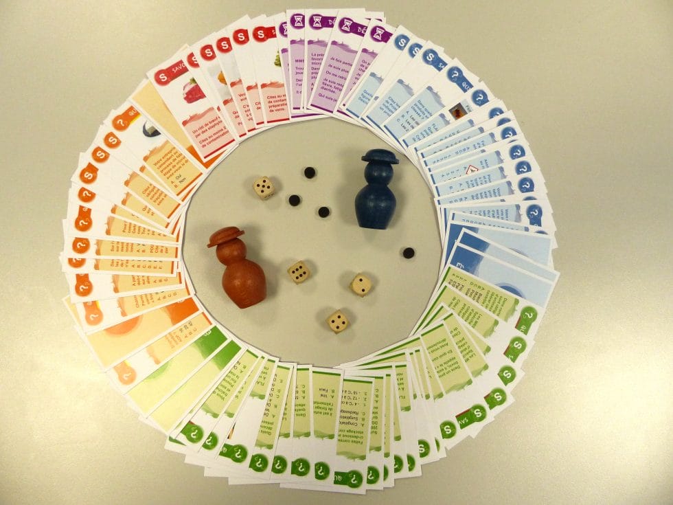 - 4 parcours de type Trivial poursuit avec des cartes contenant des questions – réponses (92 cartes)